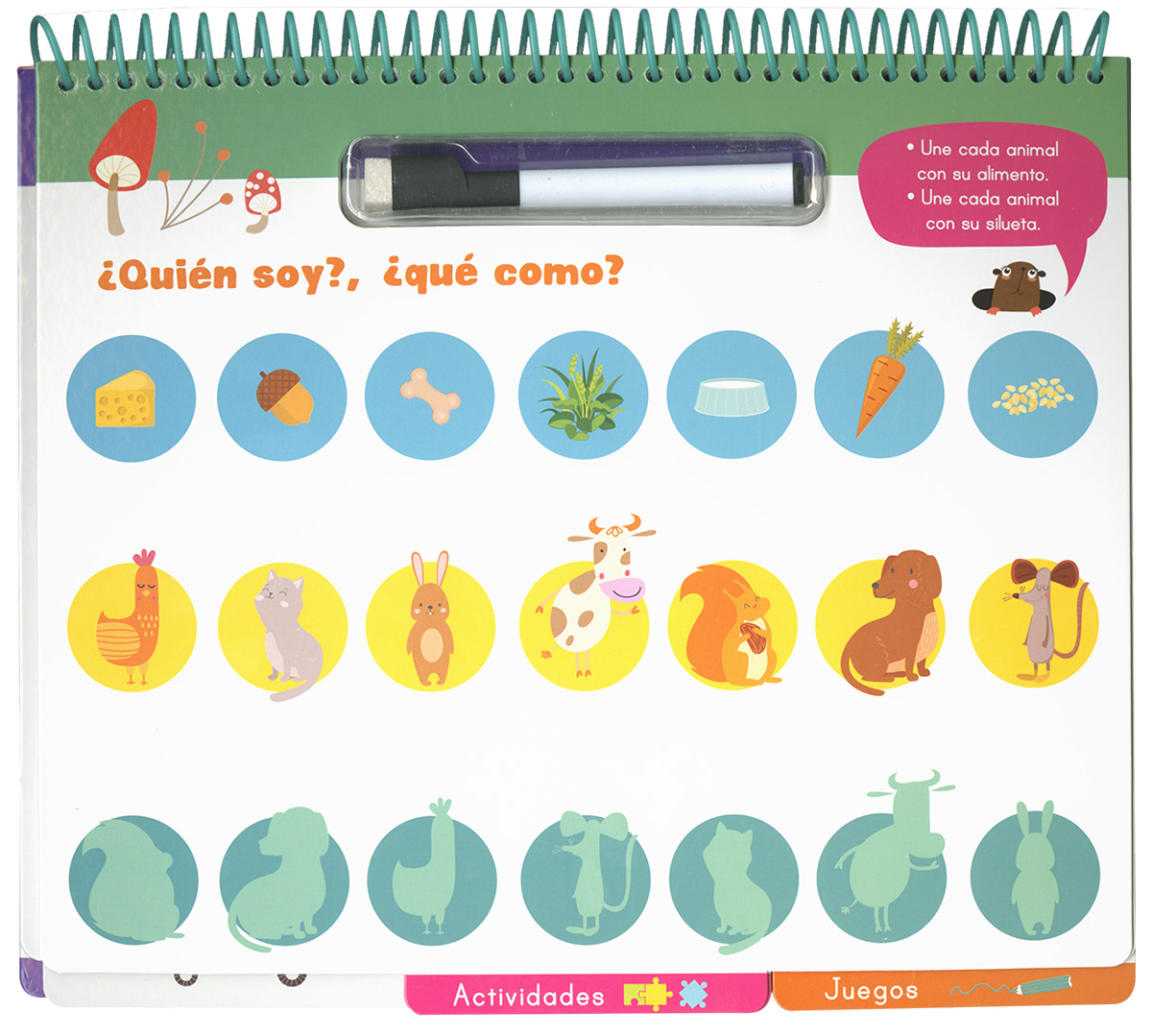 Encuadernación:  Cartulina plastificada y troquelada con espiral, rotulador borrable y páginas plastificadas
