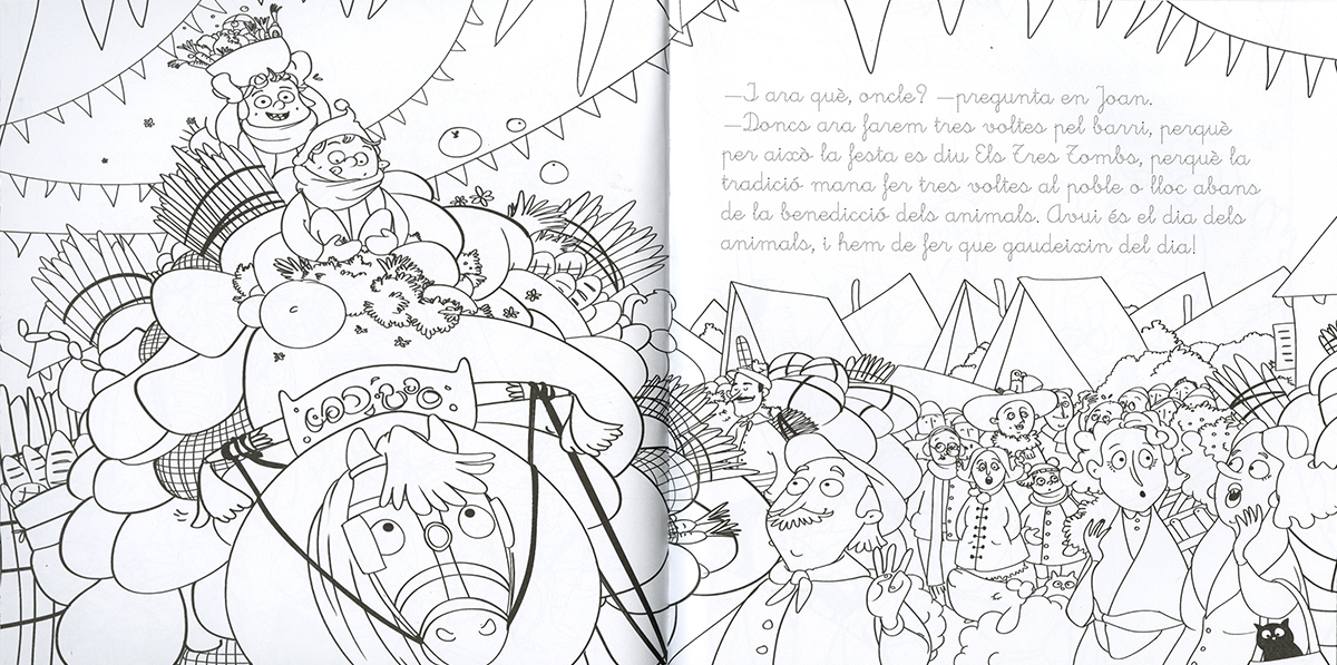 Diverteix-te pintant les il·lustracions de la festa d'Els tres tombs, una festa plena d'animals, carruatges i flors que alegra pobles i ciutats de Catalunya en ple hivern. Un dia dedicat als animals que ens acompanyen i ens ajuden. Passa-t'ho bé amb les festes i tradicions catalanes!
