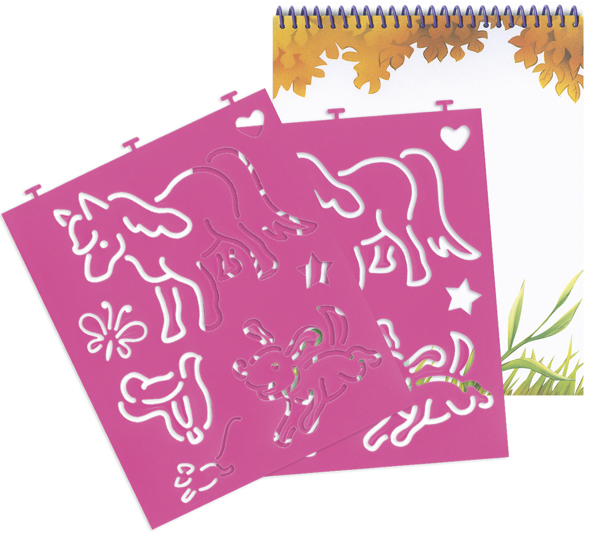Encuadernación:  Cartulina plastificada mate con purpurina y espiral, interior con plantillas de plástico