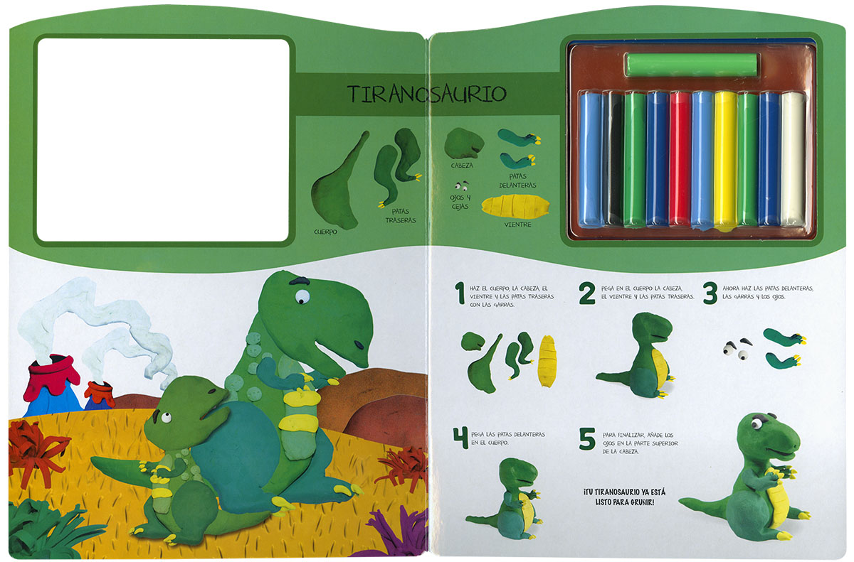 Encuadernación:  Cartón plastificado brillo y troquelado con 11 barras de plastilina de colores