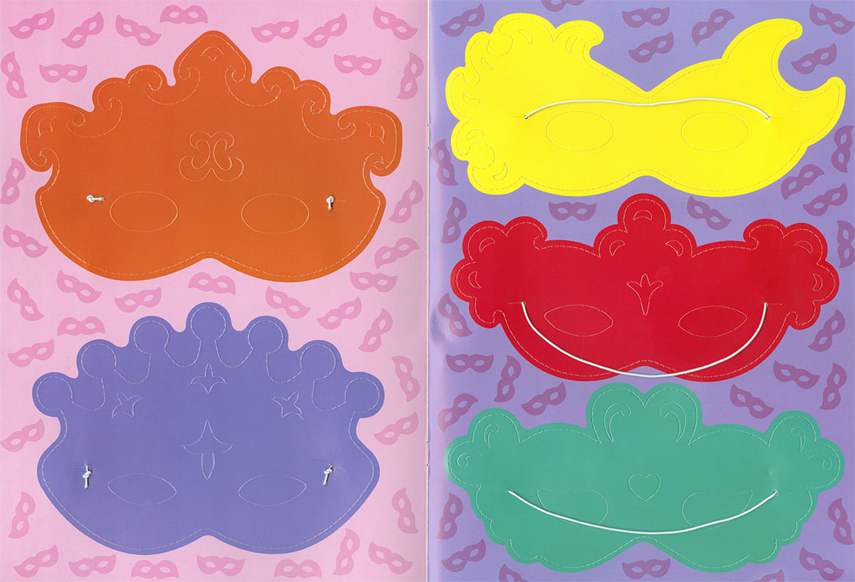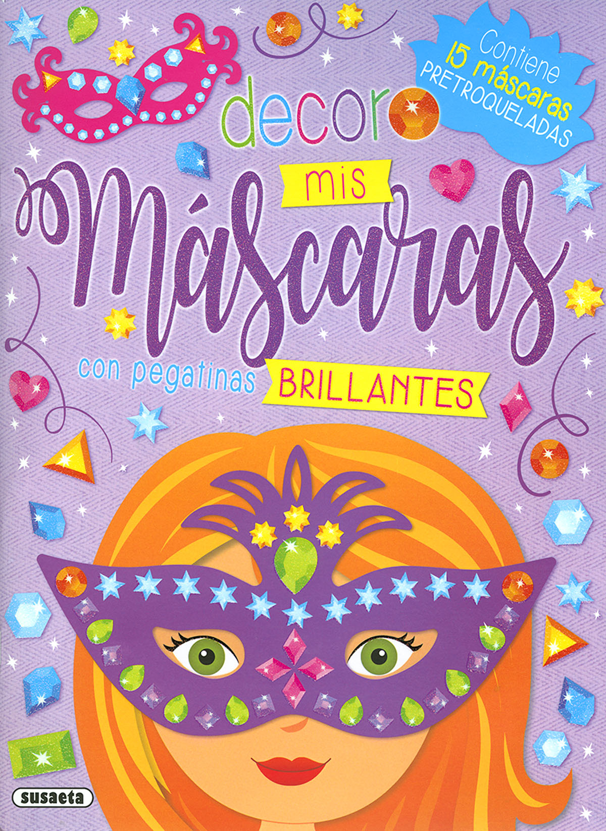 Decora estas bonitas máscaras con las pegatinas brillantes que encontrarás en el interior del libro y juega con ellas a disfrazarte en todas tus fiestas y celebraciones.
