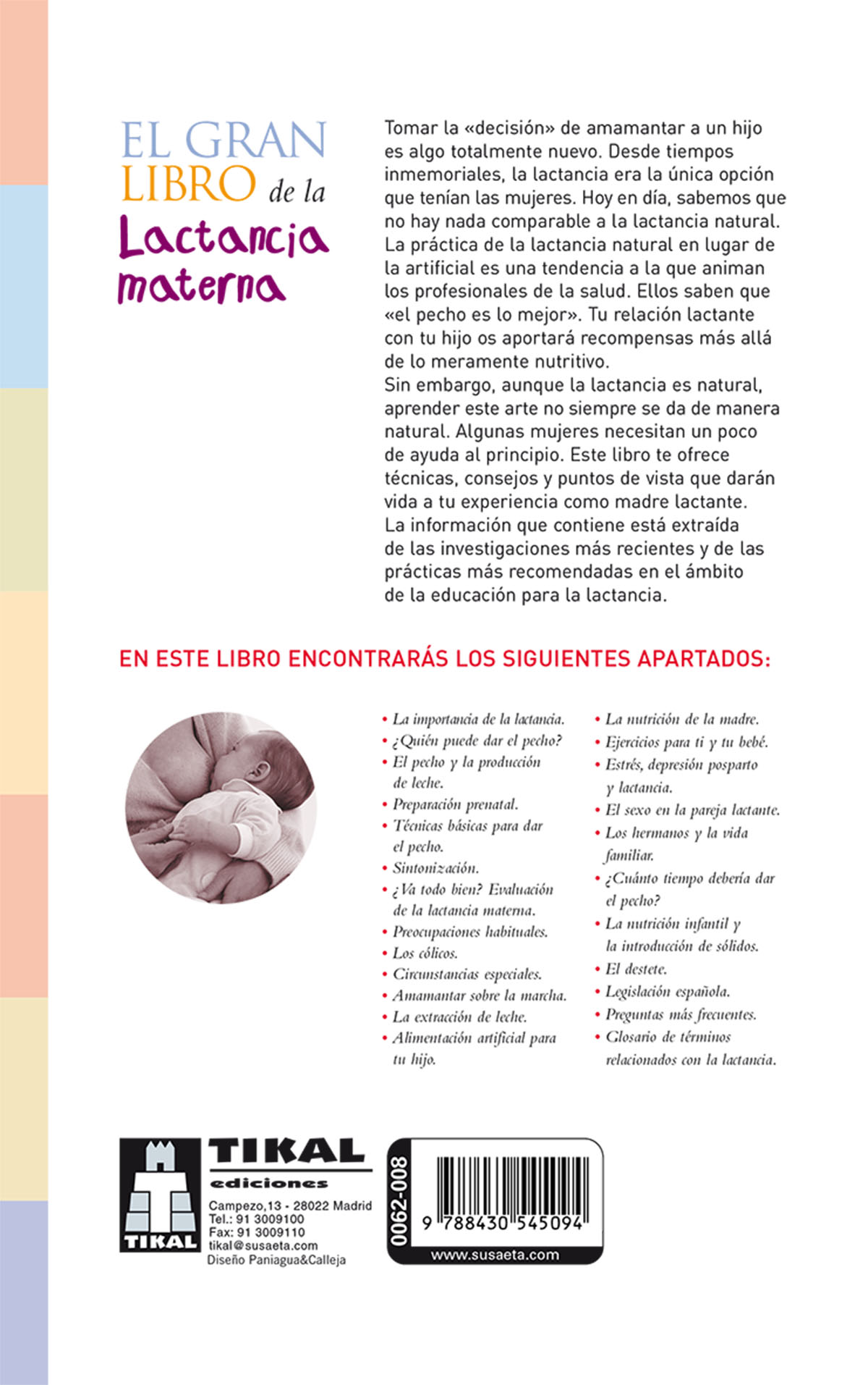 Tomar la decisión de amamantar a un hijo es algo nuevo. Desde tiempos inmemoriales, la lactancia era la única opción que tenían las mujeres. Hoy en día sabemos que no hay nada comparable con la lactancia natural; sin embargo, algunas mujeres necesitan un poco de ayuda. Este estupendo libro ofrece técnicas y consejos que te facilitarán la labor y te ayudarán a resolver tus dudas.
