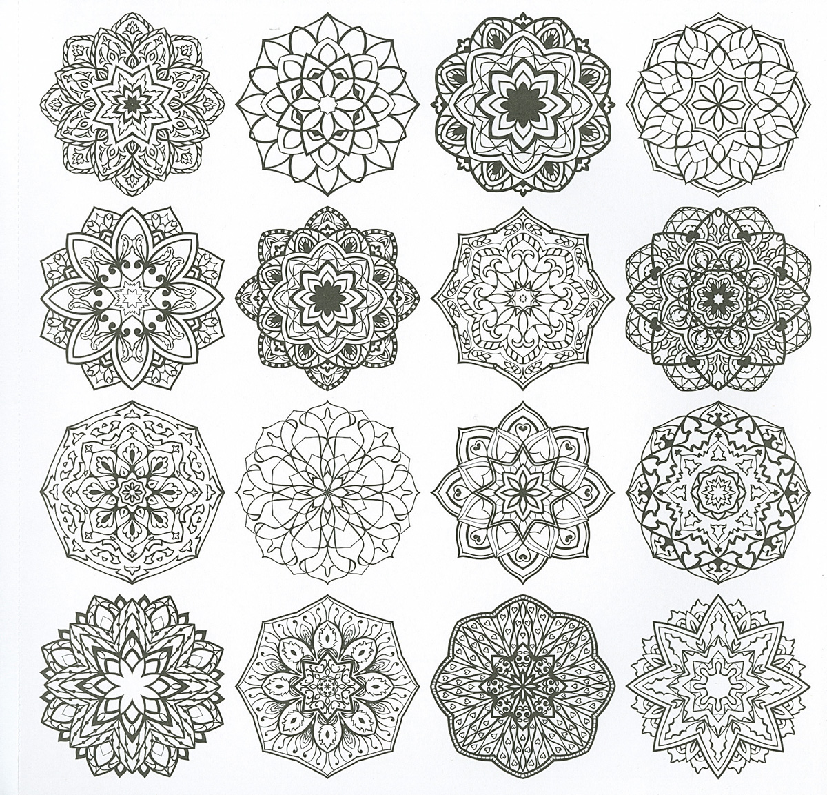 Este cuaderno recoge las obras de diversos artistas. Se trata de dibujos abstractos listos para colorear. Algunos de estos mandalas recuerdan a los caleidoscopios, otros toman elementos de la naturaleza, pero todos invitan a dedicarles cinco minutos o un día entero.