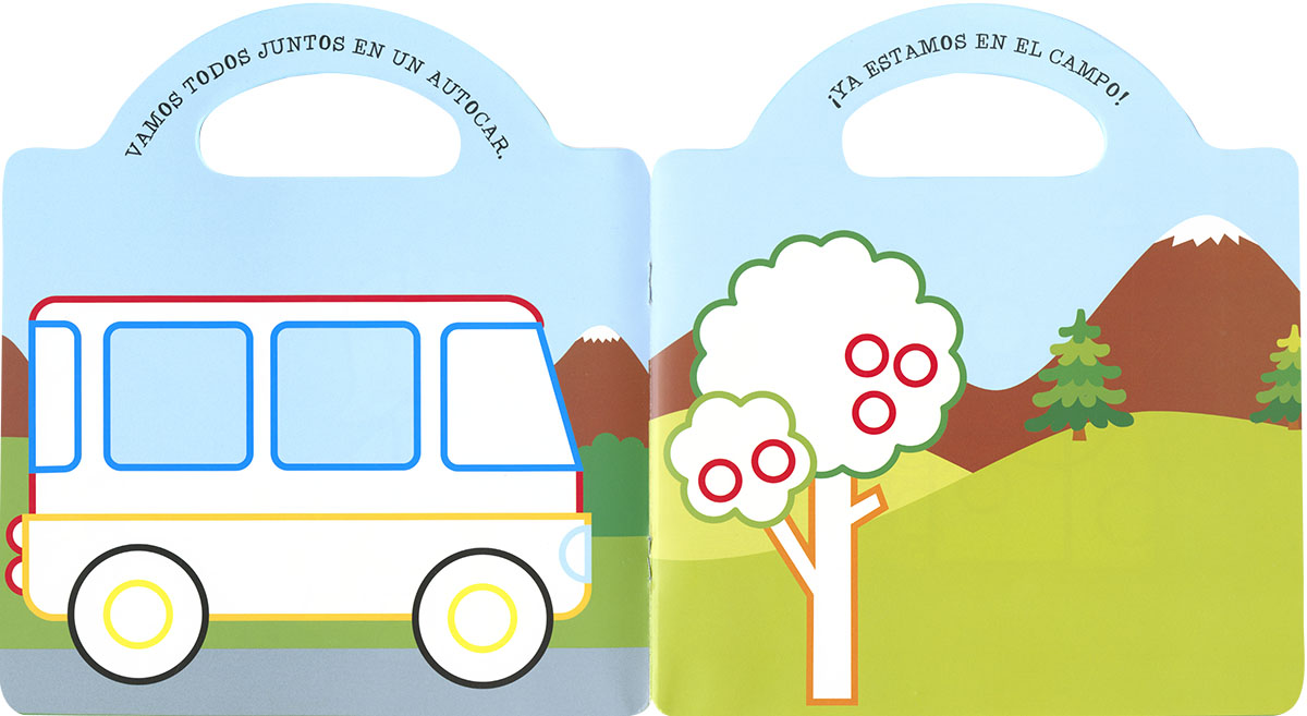 Hoy me voy de excursión con el cole! ¿Me acompañas? Disfruta de esta simpática historia, colorea los dibujos y coloca las pegatinas tomando como referencia el color del fondo. ¡Que te diviertas!