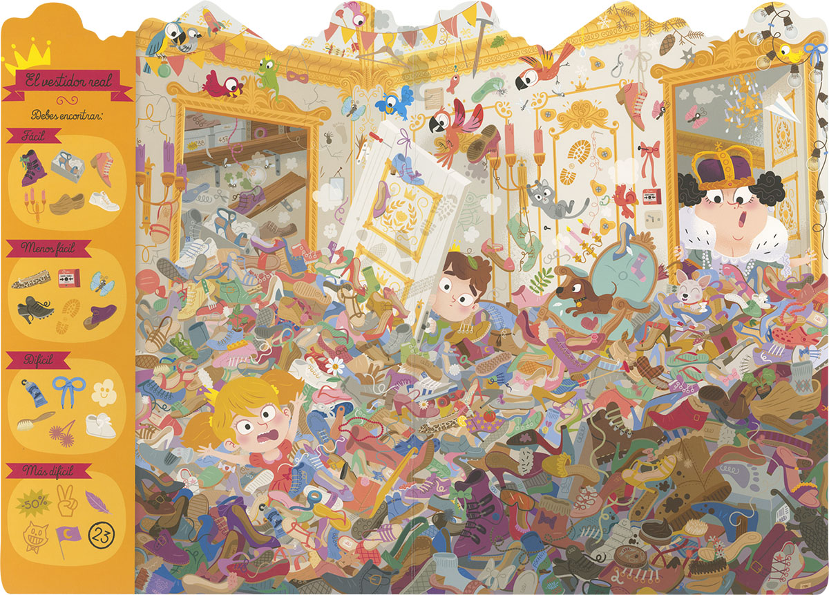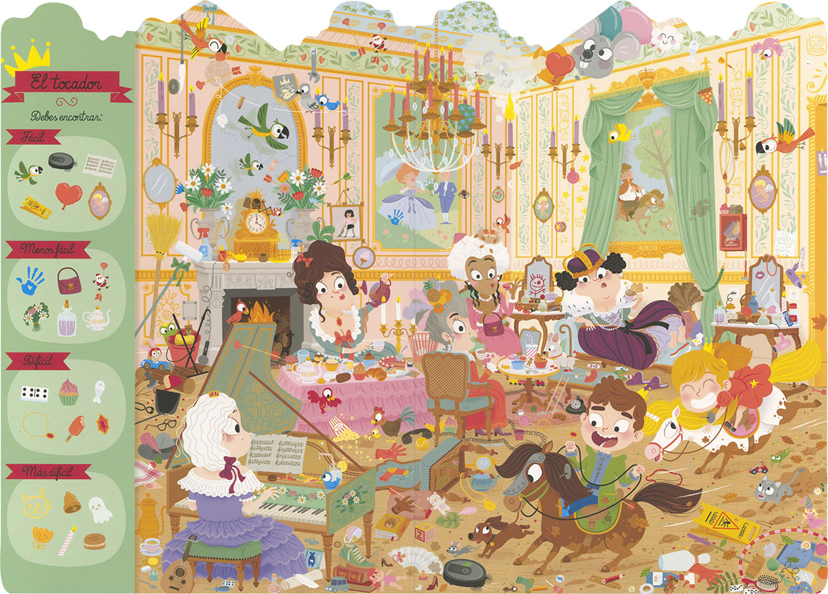 La princesa Torbellino y el príncipe Remolino han pasado el día con su tía Tiquismiquis, una mujer muy estirada que no puede encontrar nada en el desorden que los niños han dejado... ¿Quieres intentarlo tú? Busca y encuentra en este libro de cartón de gran formato. ¡Lo pasarás en grande!