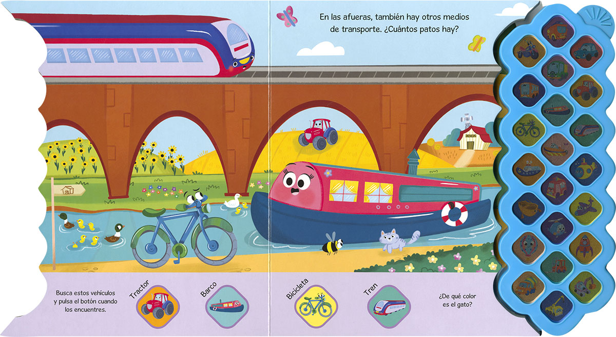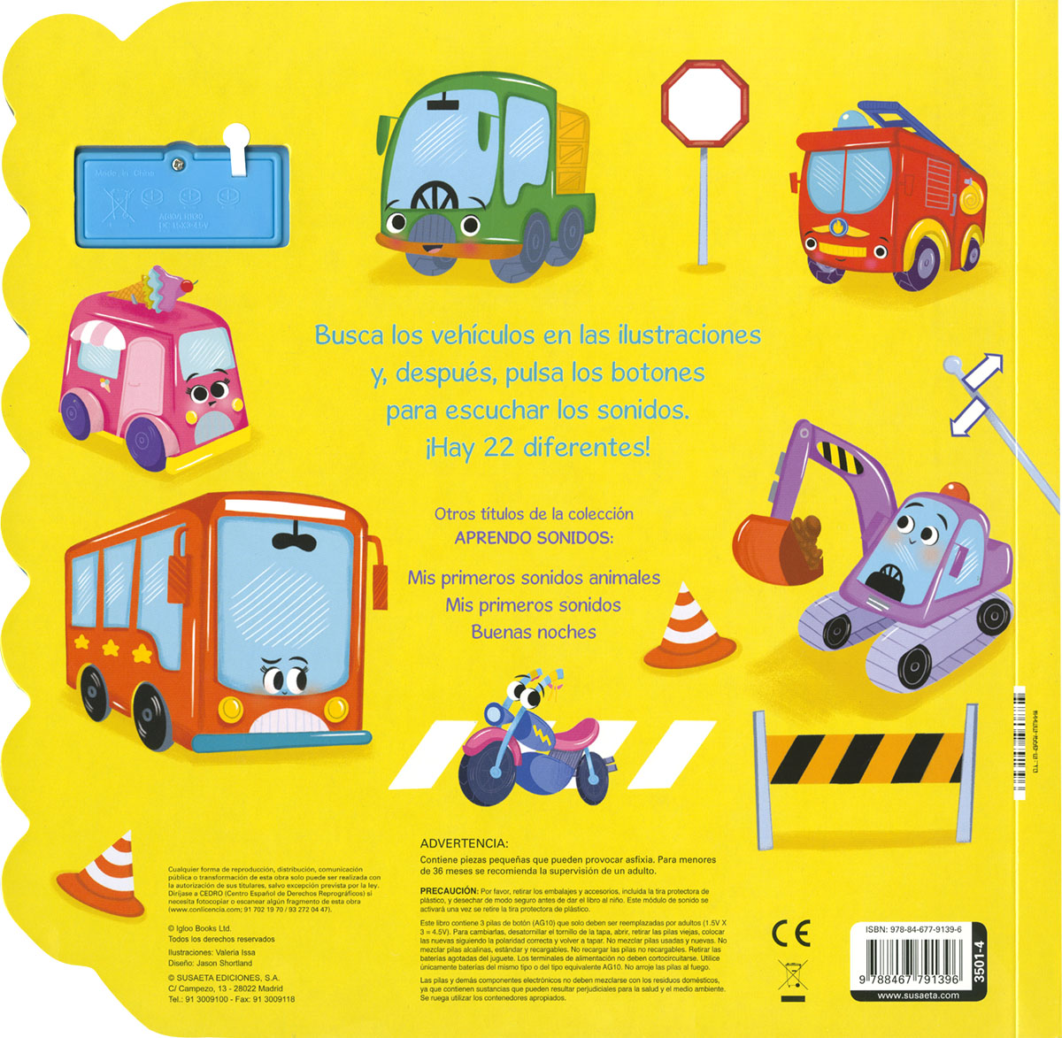 Nada menos que 22 sonidos de animales podrán escuchar los niños con este divertido libro. Con un módulo de sonidos de llamativos y brillantes dibujos, despertará su interés por el libro como objeto, los ayudará a familiarizarse con los vehículos y los hará buscar, contar y encontrar diferentes objetos. Un libro de cartón de gran formato ideal para estimular el cerebro y la risa de los más pequeños.