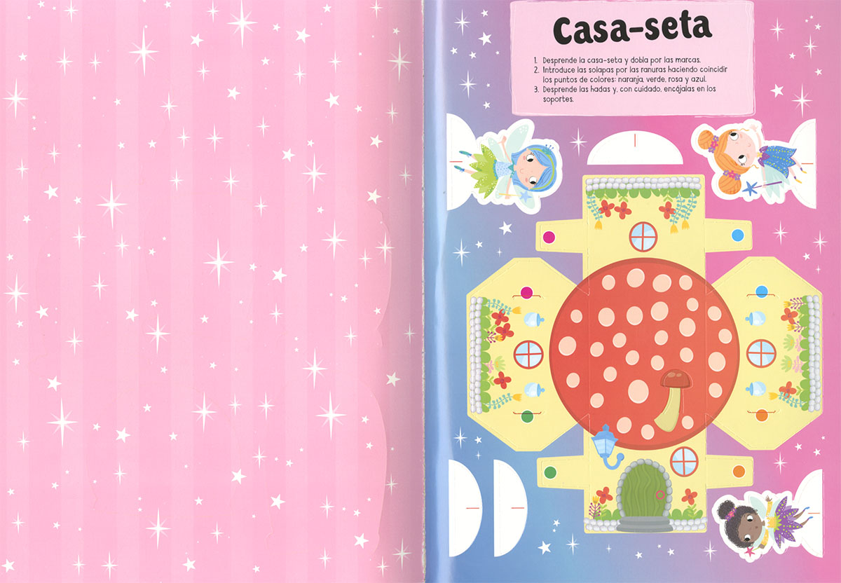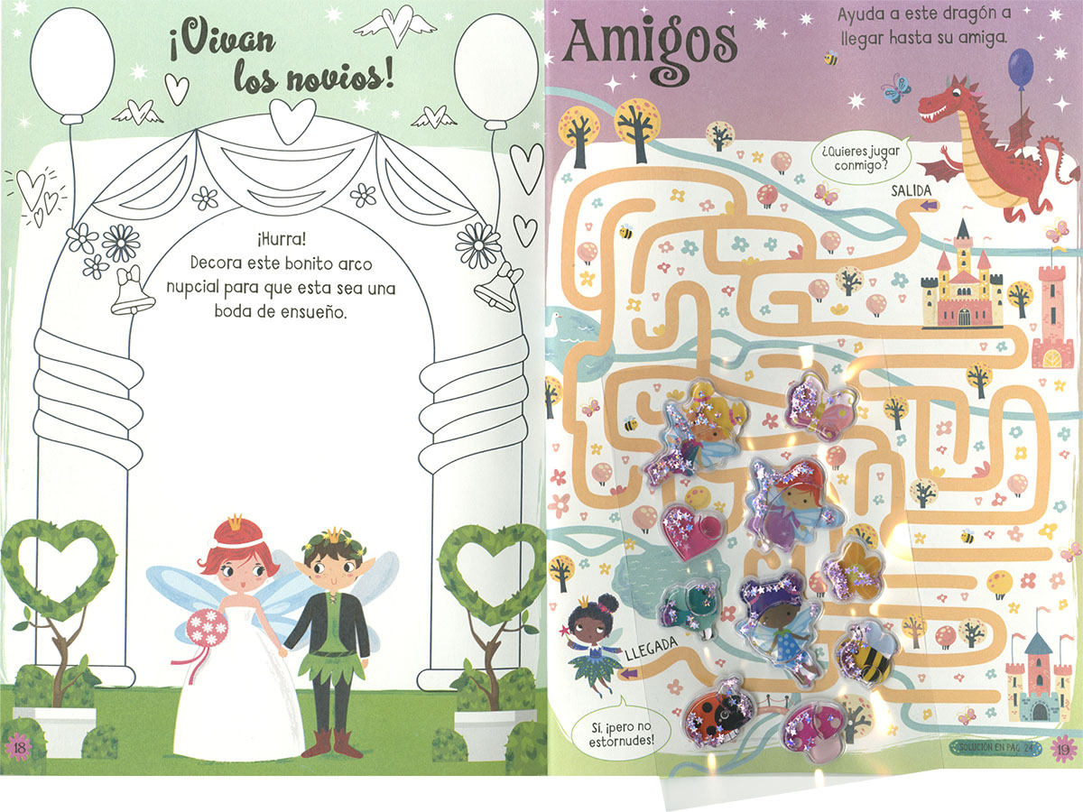 Encuadernación:  Cartulina plastif. mate, billo y troquelada con estampación, int. pegatinas 3D y fig. extraíbles