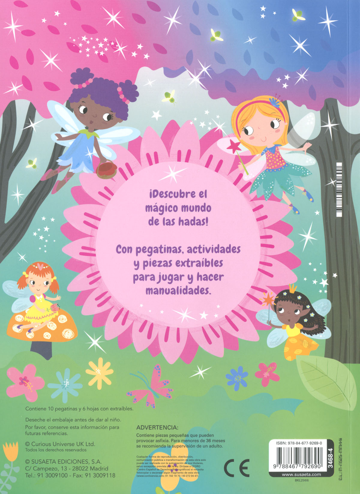 Descubre el mundo mágico de las hadas con este libro repleto de diversión: actividades, juegos, piezas extraíbles... y lo mejor de todo, pegatinas con gel de purpurina en su interior. Un completo libro para disfrutar solo o con amigos.