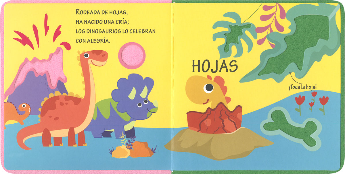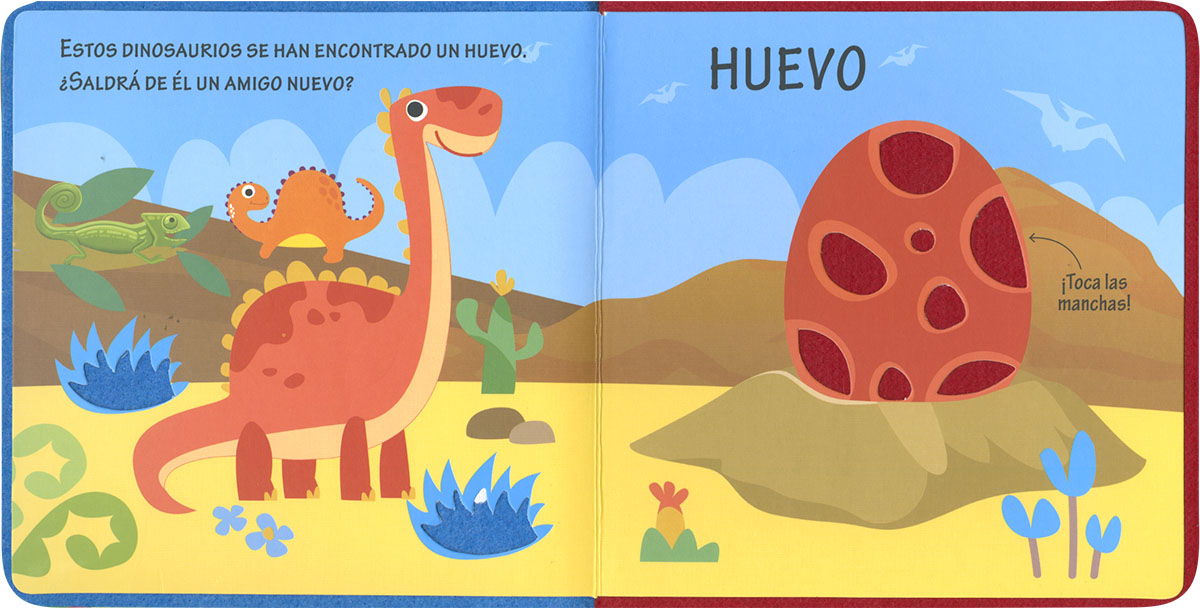 Vámonos de excursión! Podrás conocer a los dinosaurios con los simpáticos textos e ilustraciones de este libro de cartón, que además tiene texturas de fieltro que despertarán tu sentido del tacto. ¿Te vienes?