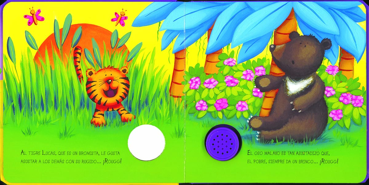 Encuadernación:  Libro de cartón plastificado y troquelado con estampación y módulo sonoro