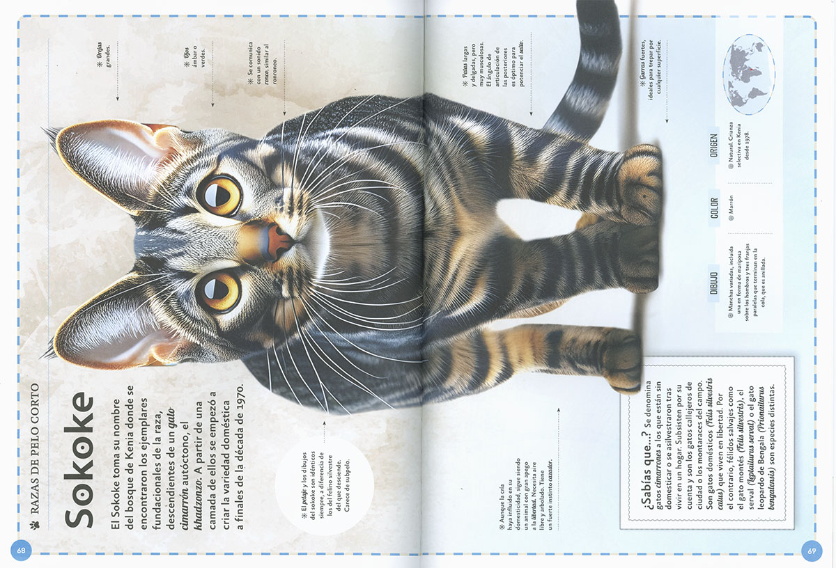 Este libro te descubrirá la anatomía y costumbres de los gatos, y te detallará alguna de sus razas más hermosas y la fascinante historia que hay tras el origen de muchas de ellas. Acompaña al gato por todo el mundo y déjate seducir por el misterio de su hipnótica mirada.