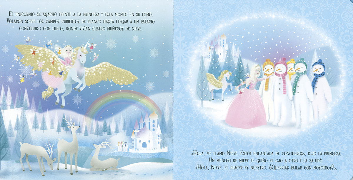 Déjate atrapar por la magia que se oculta en el interior de este libro y descubre la historia de la Princesa del Hielo mirando a través de la ventana con forma de corazón de la cubierta. ¡Con la brillantina te parecerá que nieva en el libro!