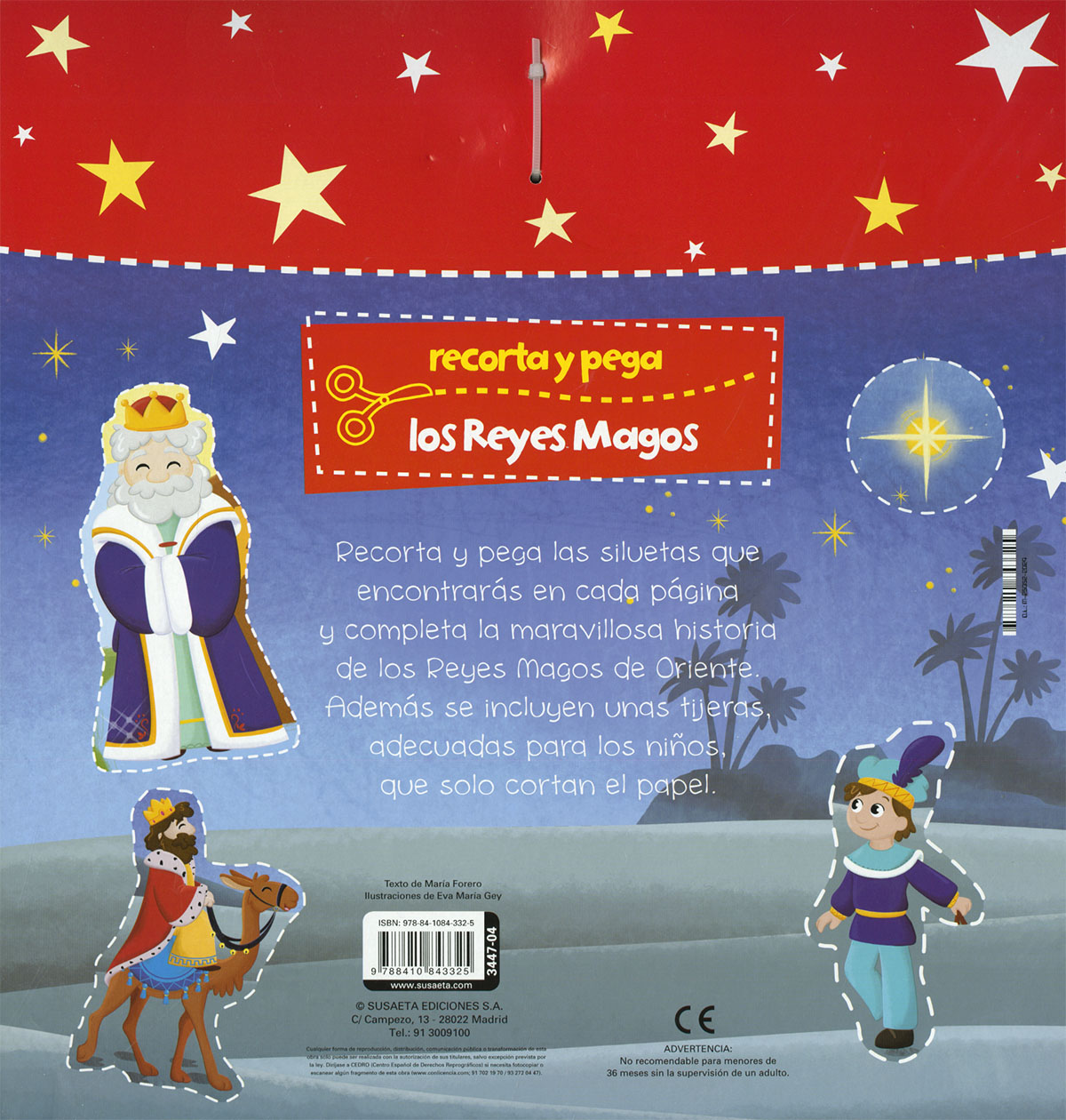 Recorta y pega las siluetas que encontrarás en cada página y completa la maravillosa historia de los Reyes Magos de Oriente. Además se incluyen unas tijeras, adecuadas para los niños, que solo cortan el papel.