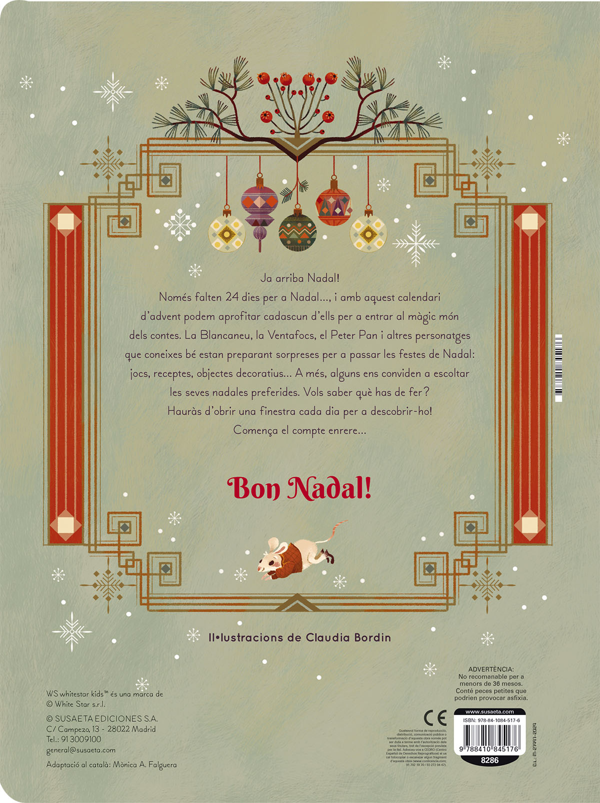 Ja arriba Nadal! Només falten 24 dies per a Nadal..., i amb aquest calendari d'advent podem aprofitar cadascun d'ells per a entrar al màgic món dels contes. La Blancaneu, la Ventafocs, el Peter Pan i altres personatges que coneixes bé estan preparant sorpreses per a passar les festes de Nadal: jocs, receptes, objectes decoratius... A més, alguns ens conviden a escoltar les seves nadales preferides: només has d'escanejar el gràfic que trobaràs a les solapes. Però no les obris totes! Hauràs d'obrir una per cada dia del calendari. Bon Nadal!